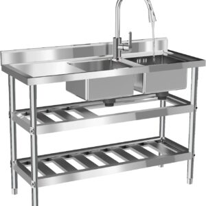 Fregadero utilitario de acero inoxidable, fregadero de cocina de restaurante comercial independiente de 47.3 pulgadas con grifo y escurridor B/.600.00 + ITBMS