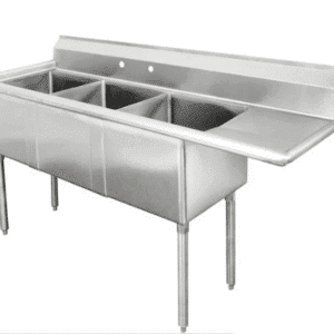 Fregadero comercial Advance Tabco FE-3-1812-18-X de acero inoxidable de tres compartimentos con escurridor - 74 1/2" - Escurridor derecho B/.2,450.00 + ITBMS