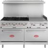Cocina comercial de gas, horno y plancha – 6 quemadores, 2 hornos de tamaño completo y placa de plancha