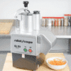 El Robot Coupe CL50E es un procesador de alimentos de alimentación continua diseñado para uso profesional en cocinas industriales. Su potente motor de 1 1/2 caballos de fuerza permite una alta producción de hasta 1100 libras por hora, ideal para procesamiento rápido y eficiente de grandes volúmenes. Cuenta con una tolva estilo medialuna para facilitar la entrada de alimentos y viene equipado con dos discos para variedad de cortes.