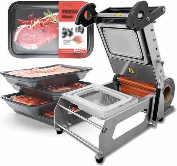 Selladora térmica manual para bandejas de sándwich para cajas de comida para llevar – máquina selladora de bandejas a presión manual para supermercados. Tamaño: 22 x 16 cm